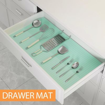 Κάθε στρώμα είναι μαλακό, ευέλικτο και εύκολο να κοπεί σε διαφορετικά μεγέθη, καθιστώντας το ιδανικό για διάφορους χώρους, συμπεριλαμβανομένων των ράφων του ψυγείου, των συρτάρων λαχανικών, των ντουλαπιών και των πάγκων της κουζίνας.Η αντρίσκεπτη υφή εξασφαλίζει ότι παραμένει στη θέση του ακόμη και με βαρύτερα βάζα και δοχεία στην κορυφή.